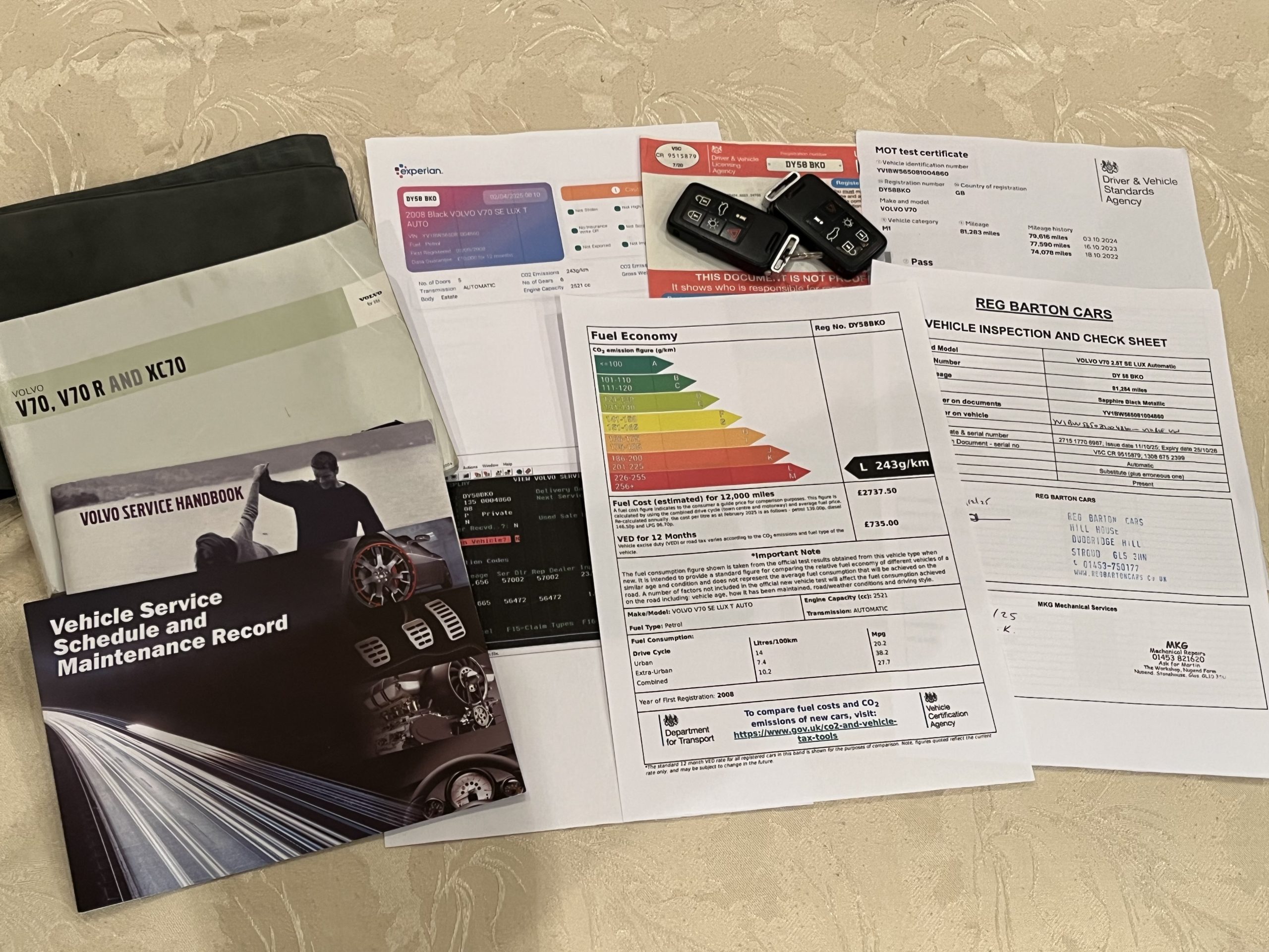 After its initial registration in September 2008, the first owner kept the car through to October 2011, when it changed hands with just under 30,000 miles recorded.  The next owner kept the car for the next ten years – until November 2021 – when it passed to the third and latest owner (a private individual based in Stoke on Trent), with around 70,000 miles recorded.  It was at that point when it seems that the service book got mixed up with another Volvo at the sales dealership – because the one that came to me with the car was originally issued to a different Volvo back in 2003.  To try and understand the service history of the car, I obtained firstly a printout from Volvo of its main agent history (two services with the first owner), and then phoned and spoke to the independent dealer who had stamped up that erroneous book during the ownership of the third owner.  That dealer verified that those service details did indeed relate to this car (they also match the MoT mileages), and they also confirmed that the cambelt and water pump was replaced in October 2023, at 77,587 miles.